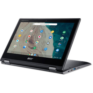 The 11.6" 32GB Multi-Touch 2-in-1 Chromebook Spin 511 from Acer features a 360° hinge, which lets you adjust it into four different viewing modes to best suit your needs. This web-based laptop is equipped with a 1.1 GHz Intel Celeron N4000 dual-core processor and 4GB of LPDDR4 RAM for efficient multitasking and everyday tasks. When it comes to storing your files securely, the Spin 511 has 32GB of eMMC flash storage. If you find yourself needing more room, you can attach an external storage solution using two USB 3.1 Gen 1 Type-A and two Type-C ports. There's also a microSD card slot reader built-in, so you can review your captured photos and videos or transfer files across systems. The Chromebook Spin 511's 11.6" 1366 x 768 IPS display is driven by an integrated Intel UHD Graphics 600 chipset and provides wide viewing angles and vivid colors. Moreover, the screen supports 10-point multi-touch inputs, so you can utilize touch gestures and commands to enhance your usage. If you wish to extend the Spin 511's display onto an external monitor, you can do so with its DisplayPort-equipped USB Type-C ports. Other integrated features include Wi-Fi 5 (802.11ac) and Bluetooth 5.0, a webcam, microphone, dual speakers, and a 3.5mm combo audio jack. The operating system installed is Chrome OS.